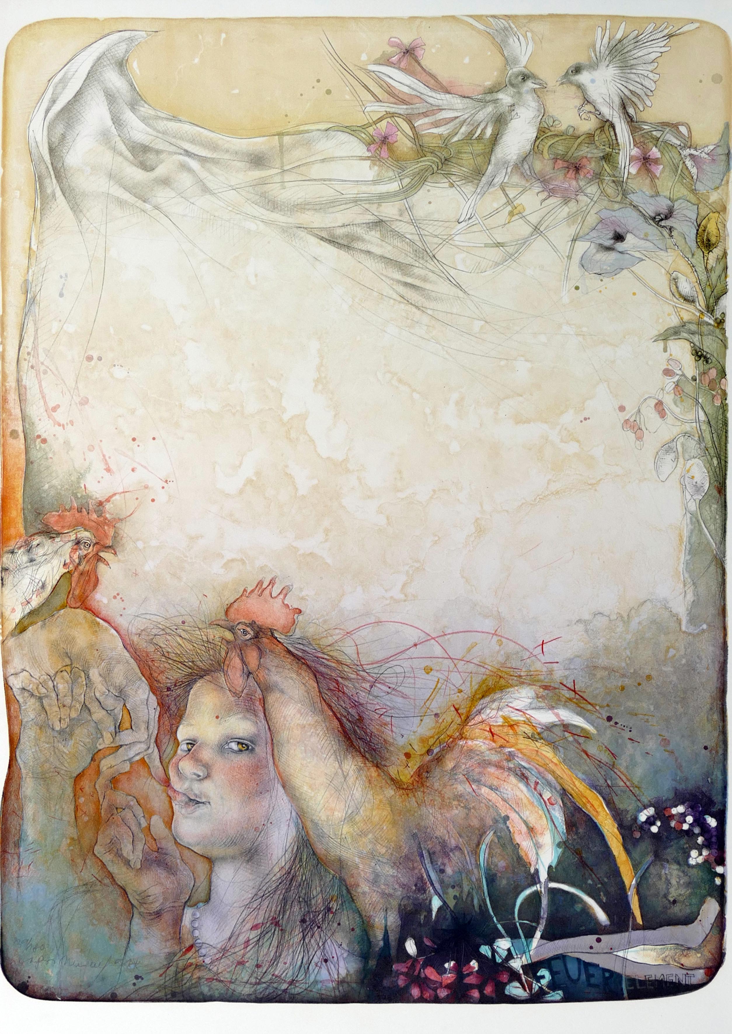 Feuerelement aus 1991 - Lithographie in Farbe