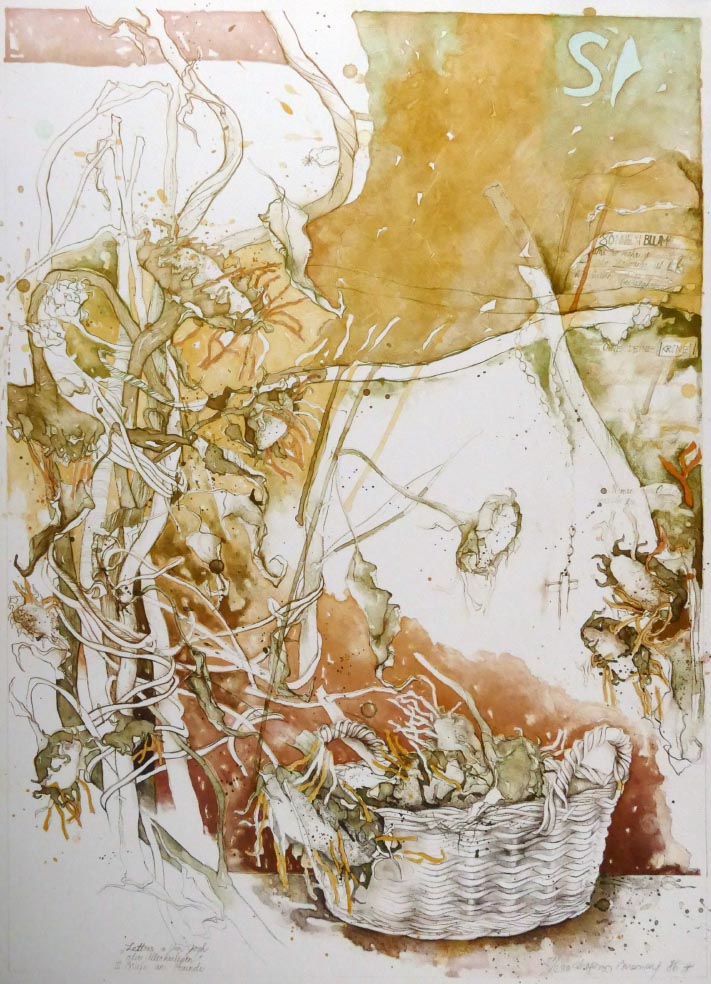 abfallend, auf BüttenPapier 45x32cm.