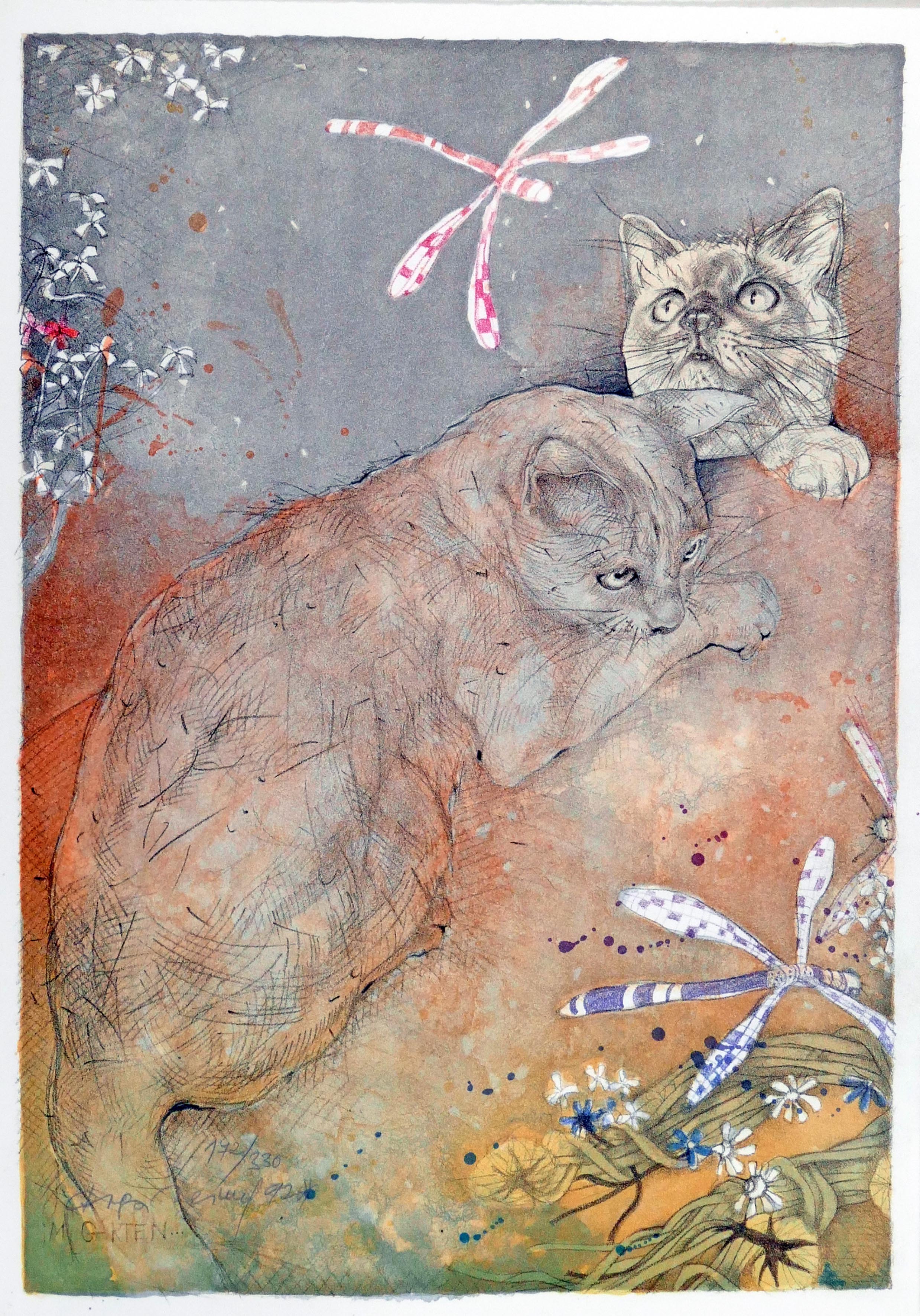 im Garten - Lithographie in Farbe aus 1992