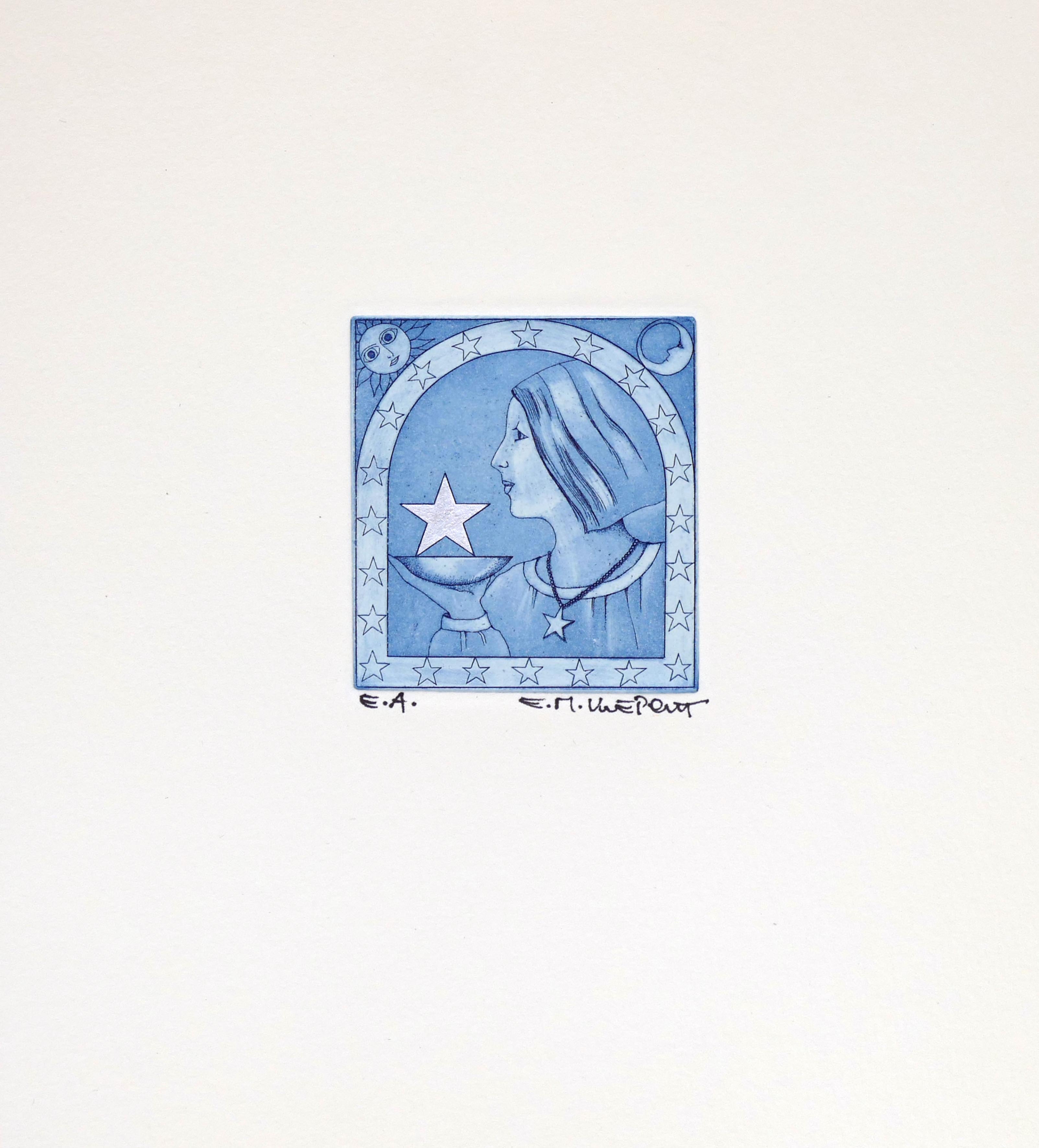 Sternzeichen Jungfrau - Radierung in Farbe