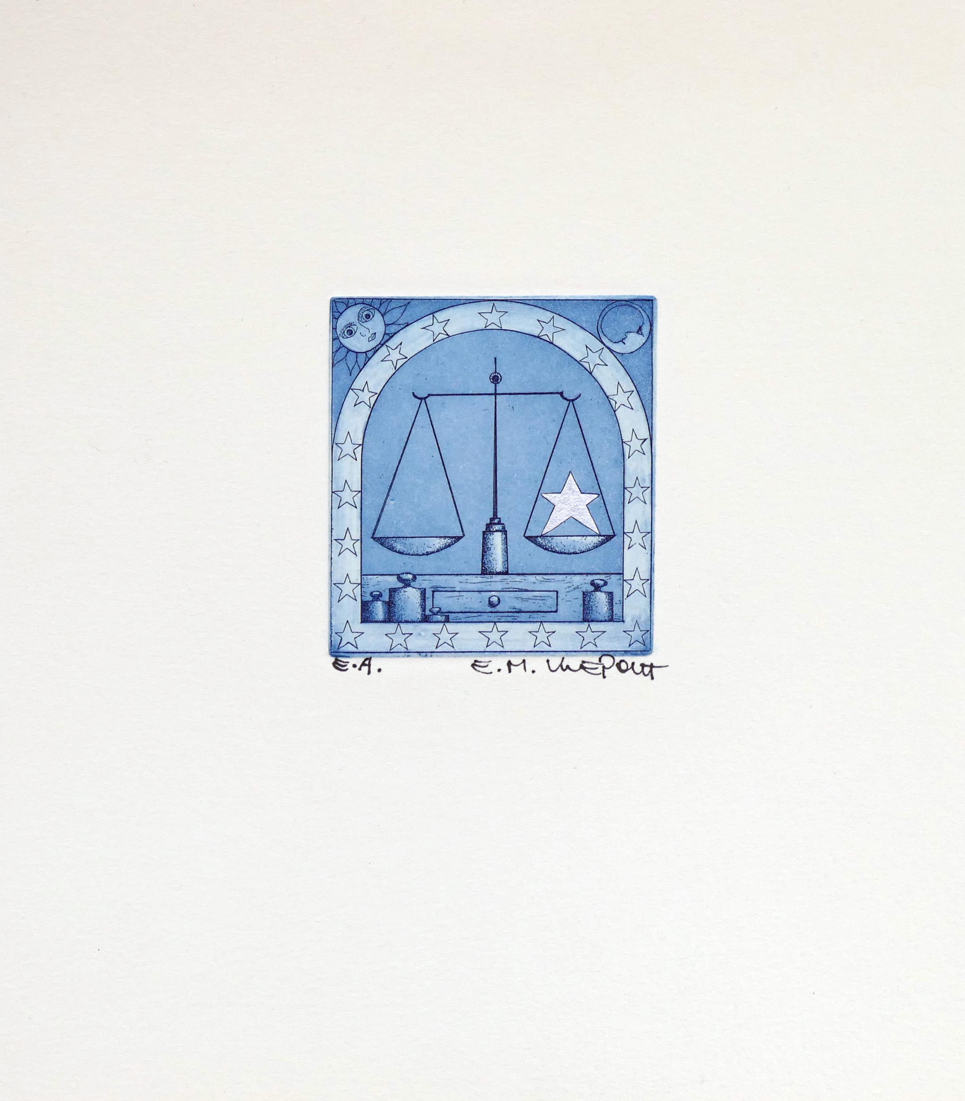 Sternzeichen Waage - Radierung in Farbe