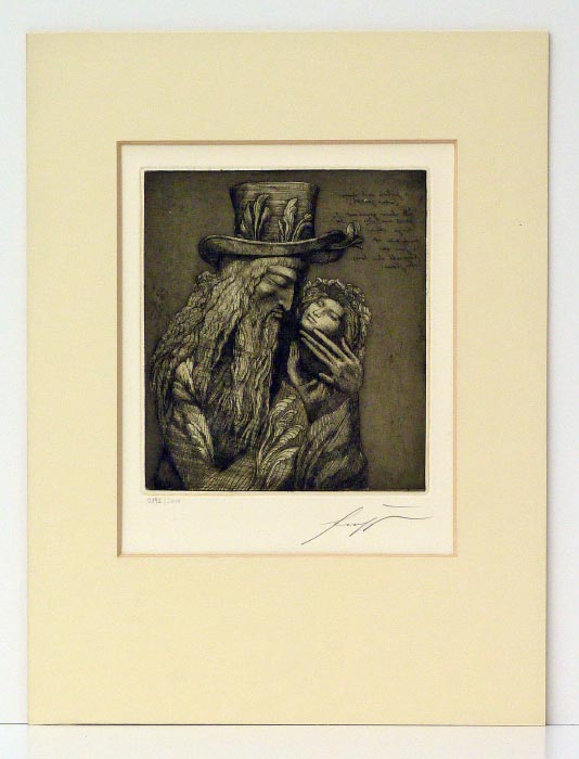 18,5x16,5cm, auf BüttenPapier 29x24cmin geklebt in Passepartout 40x30cm.