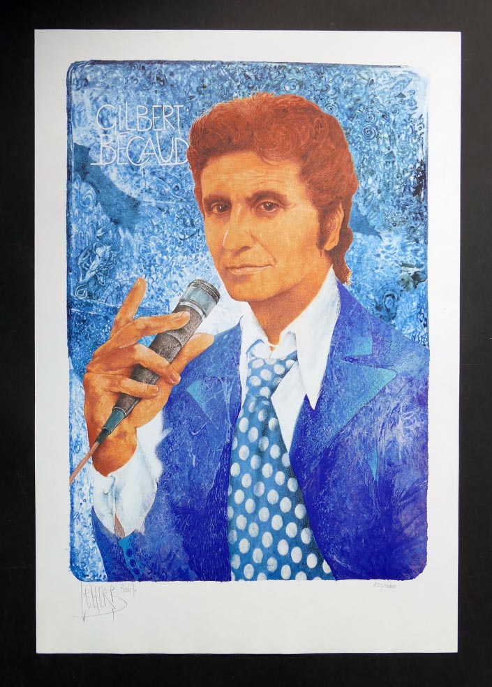 Helmut LEHERB, Gilbert Becaud - Granolithographie in Farbe aus 1976